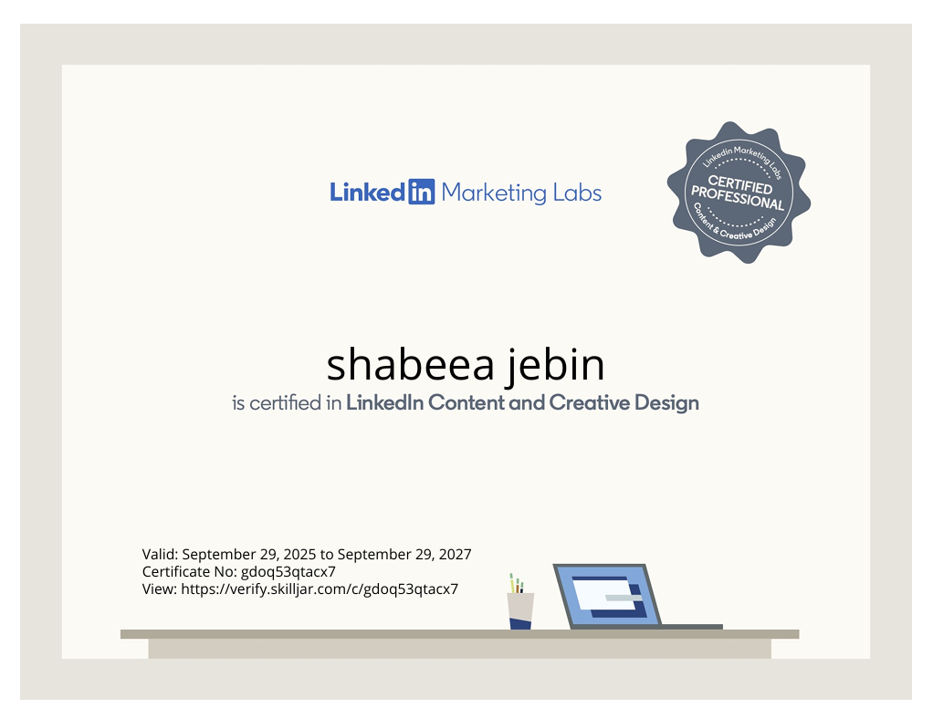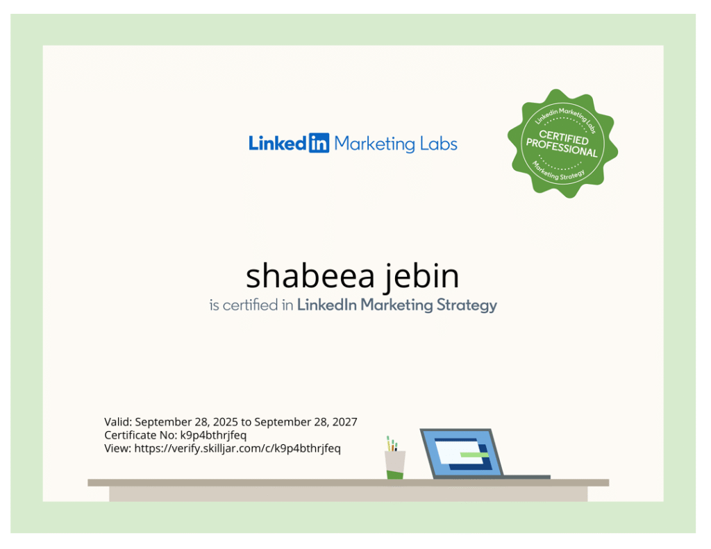 Hi, I’m Shabeea Jebin, Digital Marketing Freelancer in Malappuram, a Polymer Chemistry graduate, now studying Digital Marketing at Kenme Digital Academy and exploring the dynamic world of online marketing.